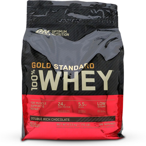 Optimum Nutrition Gold Standard 100% Whey is a premium protein shake to support lean muscle gains.