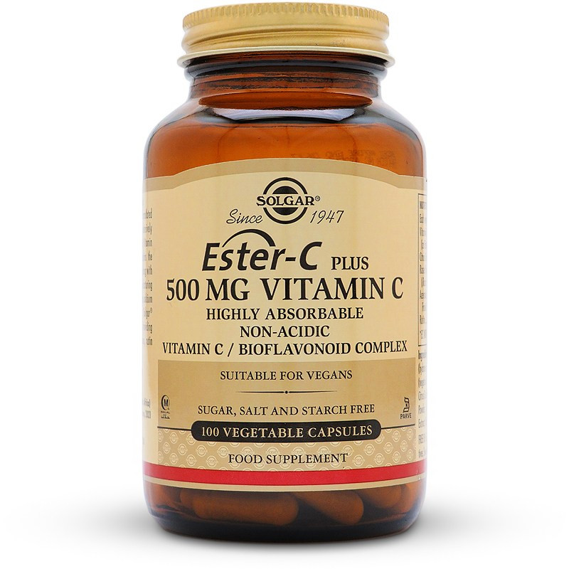 Support immunity with Solgar Ester-C Plus 500 mg. A patented, pH-neutral Vitamin C with bioflavonoids & rose hips for enhanced absorption and gentle digestion compared to regular ascorbic acid.